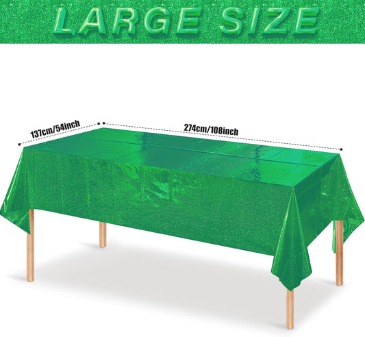 3 Pack Iridescent Green Plastic Tablecloths, Shiny Disposable Laser Rectangle Table Covers, Holographic Foil Tablecloth for St. Patrick'S Day Birthday Christmas Witch Theme Party, 54X108Inch