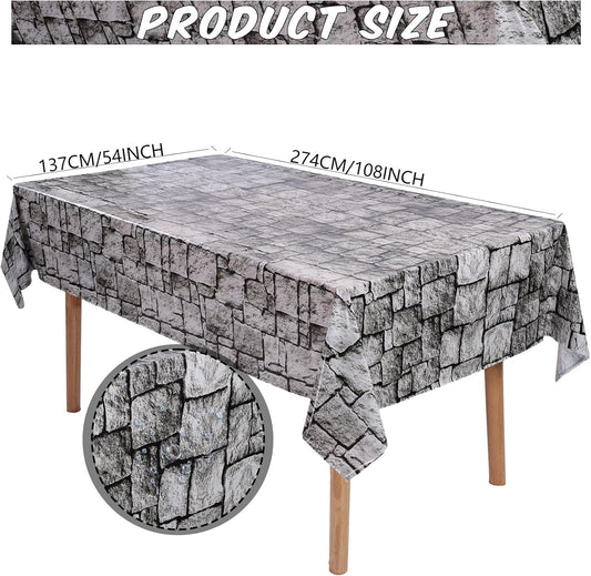 3 Packs Stone Wall Tablecloths 54 X 108 Inch Halloween Table Cloth Stone Printed Table Cover Wallpaper Plastic Medieval Castle Knight Themed Backdrop Stones Brick Tablecovers for Birthday Party