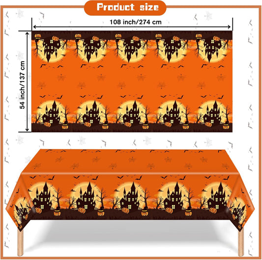 3 Packs Orange Halloween Tablecloth 54 X 108 Inches Scary Castle Ghost Pumpkin Table Cloth Disposable Waterproof Plastic Bat Spider Web Table Cover Trick or Treat for Halloween Party Dining