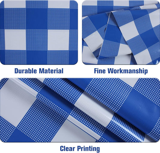 3 Packs White and Blue Gingham Table Cloths 54 X 108 Inches Disposable Plastic Checkered Tablecloths Waterproof Rectangle Picnic Party Tablecovers for Birthday Party Dining Table Kitchens