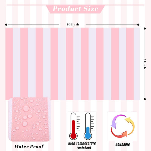 3 Packs Pink and White Horizontal Striped Table Cloth 54 X 108 Inches Pink Stripe Tablecloths Disposable Plastic Stripe Table Covers Waterproof Rectangle Picnic Tablecover for Birthday Party