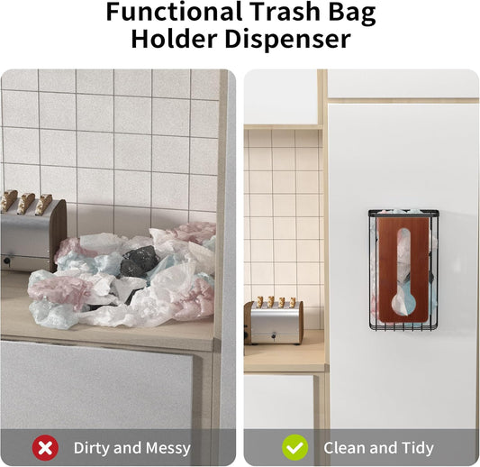 Plastic Grocery Bag Holder - Extra Large Trash Bag Dispenser Wall Mount with Mounting Accessories - Walnut Black Reusable Bags Storage Organizer for Kitchen, under Sink, Pantry, Garage
