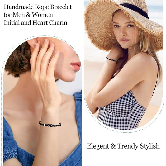 Black Rope Initial Bracelet for Men Women, 6Mm Beads 26 Letters A-Z Alphabet Handmade Adjustable Weaving Beadsbracelet for Couples Friends Mom Dad, Christmas Birthday Jewelry Gifts