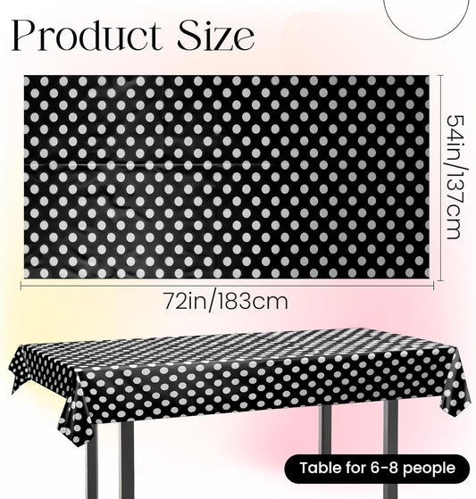 Black Polka Dot Rectangle Tablecloth - 54" x 72" Decorative and Stain-Resistant Table Cover for Events and Occasions