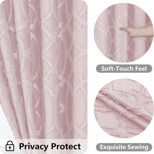 Blush Stall Shower Curtain Set 36X72 Inches, Jacquard Geometric Textured Tufted Fabric Shower Curtains for Bathroom, Boho Half Size RV Shower Curtains with 12 Plastic Hooks