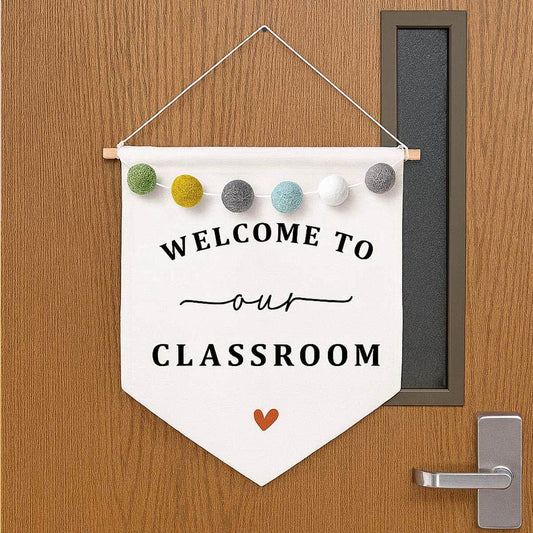 Boho Welcome to Our Classroom Wall Sign Felt Ball Banner for Teachers Teacher Door Hanger Decor for Classroom Door or Wall, Back to School Teacher Gift (Classroom)