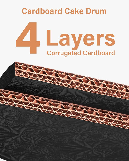 Cake Boards Drum 12 Inch Round, 1/2" Thick Decorating Supplies, Black Sturdy Corrugated Cardboard Base, Base Para Pastel, 1 Pack