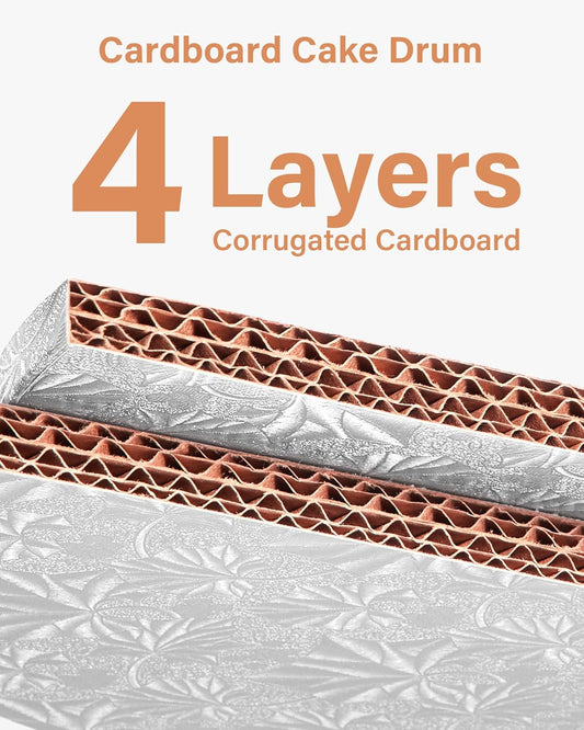 Cake Boards Drum 12 Inch Round, 1/2" Thick Decorating Supplies, Silver Sturdy Corrugated Cardboard Base, Base Para Pastel, 1 Pack