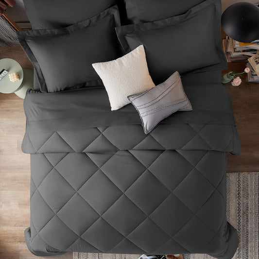 California King Comforter Set with 7 Pieces Bed in a Bag Dark Grey Cal King All Season Bedding with Comforter, Pillow Shams, Flat Sheet, Fitted Sheet and Pillowcases