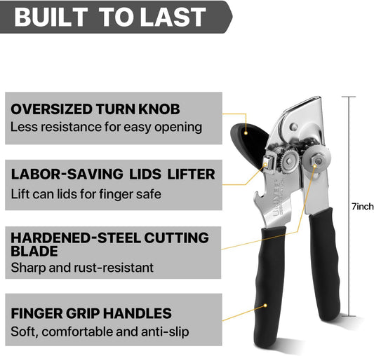 Can Opener Manual Heavy Duty, Hand Held Can Openers for Seniors with Comfort Grip Sharp Blade, Solid Steel Hand Manual Can Open with Magnet for Kitchen Camping, Black