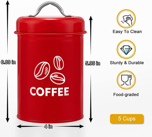 Canisters Set of 3, Metal Kitchen Canister with Lid Set for Sugar Tea Coffee, Food Storage Jars, Vintage Containers for Candy, Cookie or Beans, 4” X 6.89”, (5 Cups), Red