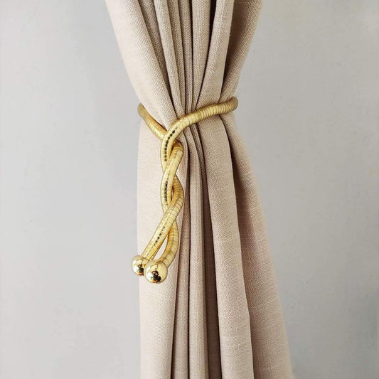 Curtain Tiebacks Clips, Decorative Drapes Holdbacks, Handmade Metal Rope Tiebacks, Creative Window Drapes Twist Tie Backs, Curtain Holders(Gold, 2 Pack)