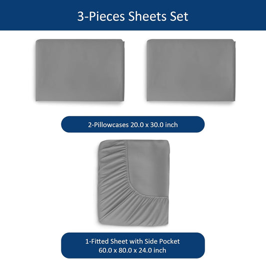 Extra Deep Pocket Queen Sheet Sets for Air Mattress - Deep Pocket Sheets Queen Size Sets - Sheets with Pocket on Side - Easily Fits Extra Deep 16 in to 24 in Pillow Top Air Mattress (Grey)