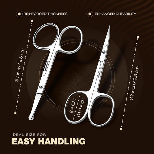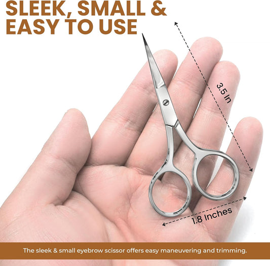 Eyebrow Scissors, Professional Stainless Steel Small Shears for Men and Women, Nose Hair Scissors for Grooming Mustache, Beard, Eyelashes, Ear Hair Trimming, Silver