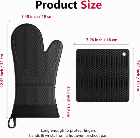 Extra Long Silicone Oven Mitts With Pot Holders Two Pack