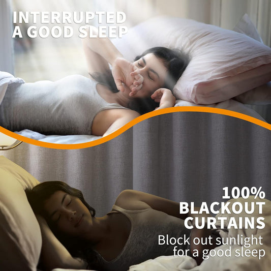 Linen Blackout Curtains 63 Inch Length for Bedroom, Grommet Thermal Insulated Black Out Window Drapes for Living Room Winter Room Darkening Blinds Privacy, 2 Panels, 52 X 63 Inch, Beige