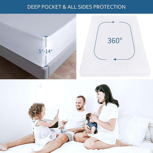 Waterproof Mattress Protector Twin Size, Skin Friendly and Breathable Twin Mattress Cover for Kids, Viscose Jersey Mattress Pad with 14" Deep Pocket