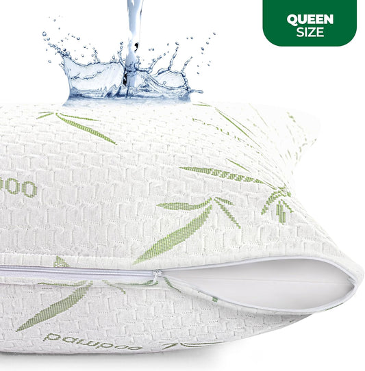 Waterproof Pillow Protectors with Zipper Queen Size (2 Pack), Soft and Cooling Bamboo Viscose Pillow Covers, Bed Bug Proof Pillow Encasements 20 X 28 Inches