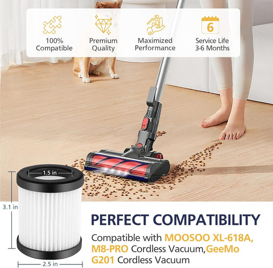 XL-618A Fliter Compatible with Moosoo XL-618A and M8-PRO Cordless Vacuum, Efficient Filter, 6 Pack