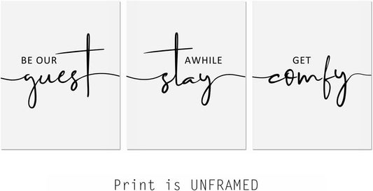 Guest Room Wall Art Be Our Guest Stay Awhile Get Comfy over the Bed Sign Wall Decor Bedroom Artwork Pictures New Home Decor UNFRAMED 11X14InchVendor:BodPeaceRegular price $48.99 USDRegular priceUnit price / per$66.99 USDSale price $48.99 USDSale