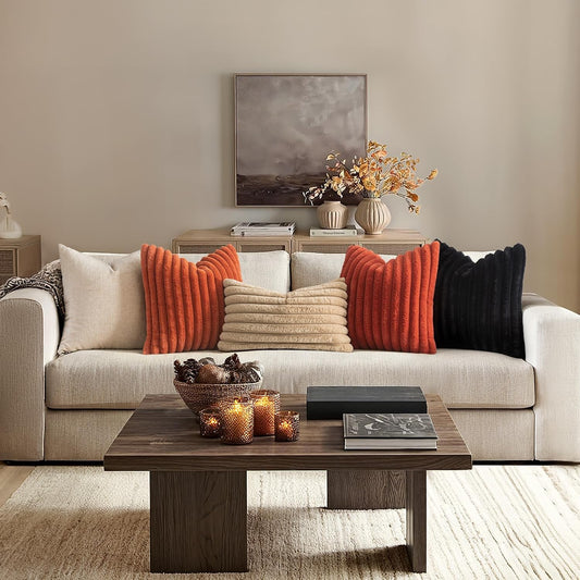 Faux Fur Plush Decorative Throw Pillow Covers Set of 2 Luxury Soft Fluffy Striped Pillowcases Cushion for Sofa Couch Bed Living Room Black 18X18 Inch