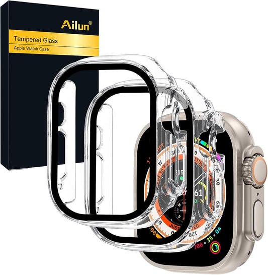 for Apple Watch Ultra 2/Ultra Screen Protector [49Mm],Hard PC Case[2 Pack][Clear], Apple Watch Series 9 & 8 & 7 Screen Protector [45Mm],Hard PC Case [2 Pack][Black]