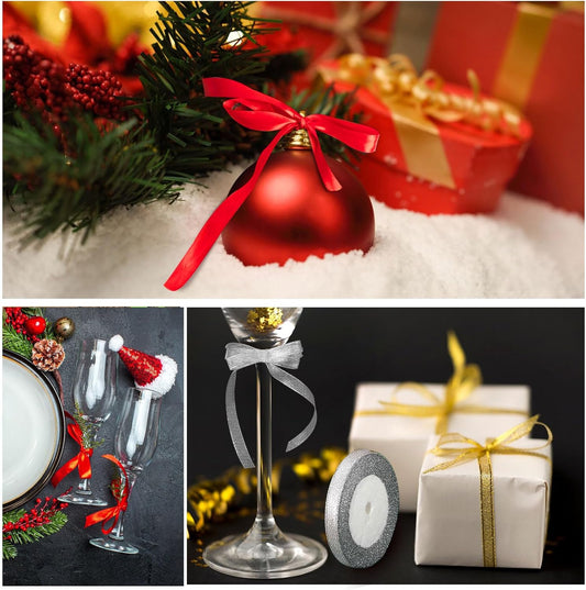 Four Color Glitter Satin Ribbons 25 Yards Each Gift Wrap Set