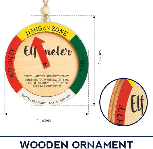 Funny Christmas Ornaments 2025, Unique Elf Meter Ornament with Naughty or Nice Arrow, Funny Gifts for Friends Coworker Family, Elf Meter Decoration for Tree, Holiday Funny Decor