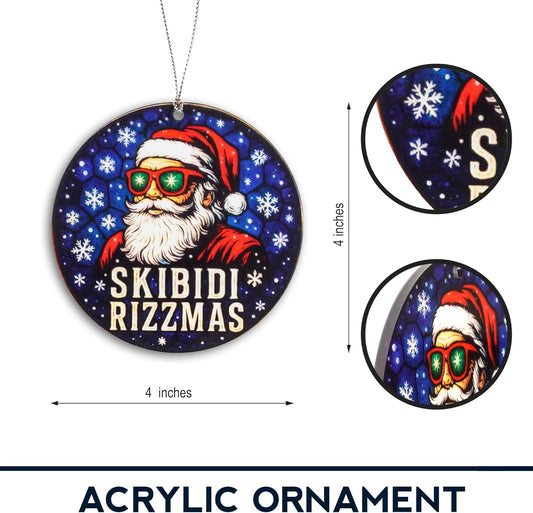 Funny Skibidi Rizzmas Ornament, Funny Christmas Ornaments 2025, Santa Ornaments for Christmas Decorations, Trendy Santa Coolness, for Friend, Family, Coworker, Holiday Hanging Decor