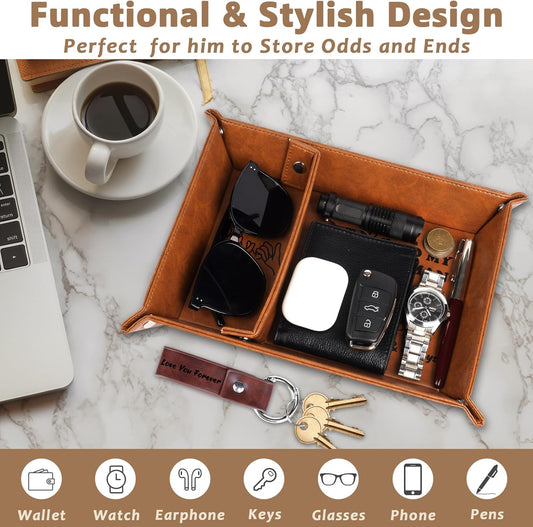 Gifts for Him, PU Leather Valet Tray and Keychain, Husband Birthday Gift Ideas, Unique Cool Husband Him Gifts for Anniversary, Best Husband Ever Gifts for Men Boyfriend