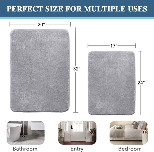 Memory Foam Bathroom Rugs Sets 2 Piece - Super Soft Absorbent Quick Dry Bath Mat Set, Machine Washable Non Slip Floor Carpet for Tub Shower & Single Sink (17X24 & 31.5X20 Inch, Gray)