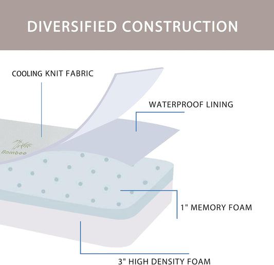 Memory Foam Folding Mattress with Storage Bag, 4 Inch Foldable Mattress Trifold Mattress Topper, Floor Mattress Guest Bed with Cooling Cover & Waterproof Lining