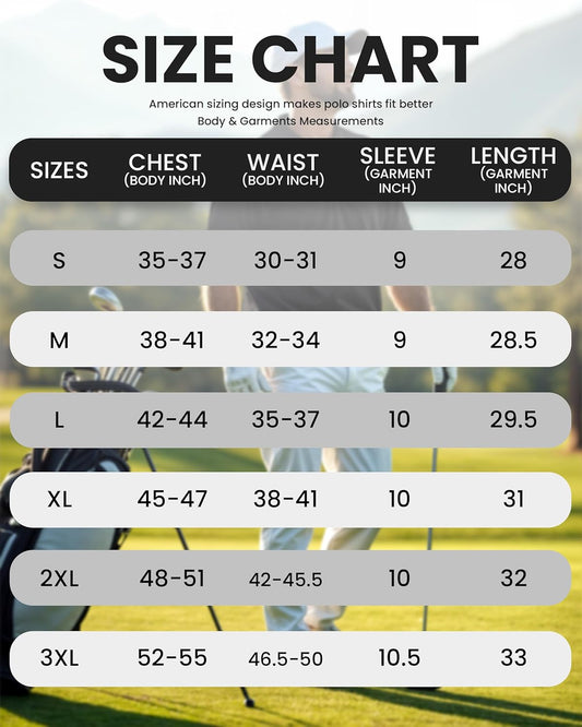 Men'S Golf Polo Shirt UPF 70+ Moisture Wicking Quick Dry Performance Short Sleeves Polo Shirts