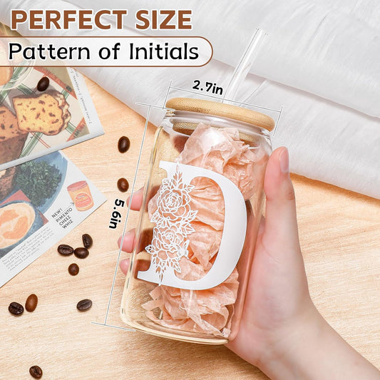 Personalized Initial Glass Cup For Women With Lid 16 Oz Gift