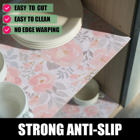 Peony Shelf and Drawer Liner for Kitchen,Non-Adhesive and Strong Non-Slip Floral Cabinet Drawer Liners for Kitchen Shelf, Waterproof Cupboard Liners,Easy to Clean,12In X 10FT