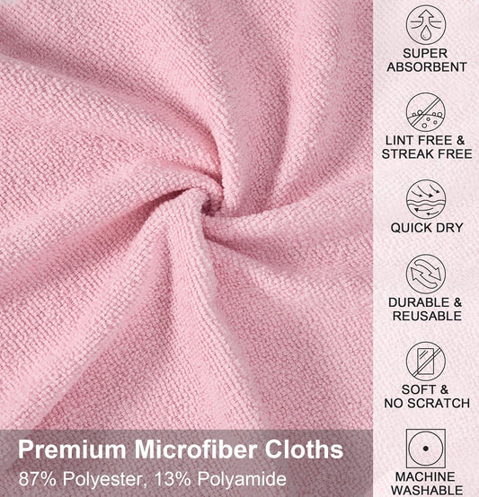 Pink Reusable Microfiber Cleaning Cloths 12x12 Inch 50 Pack