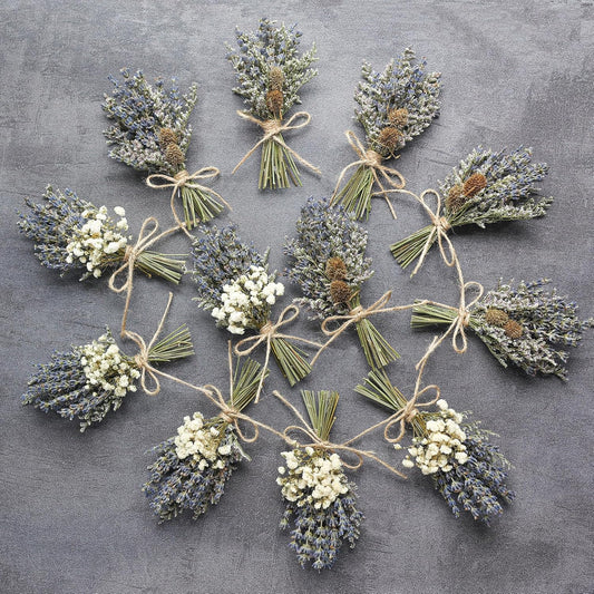 12Pcs Lavender Bouquet, Mini Dried Flower Bouquet, Groom & Best Man Corsage. (Lavender)