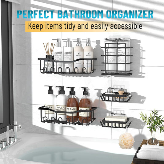 Shower Caddy 5 Pack, Adhesive Shower Organizer for Bathroom Storage, Rustproof Stainless Steel Bath Organizers, Shelves for inside Bathroom, Large Capacity, Home Decor Accessories, Black
