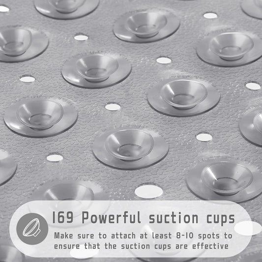 Shower Bathtub Mat Non Slip, 21X21 Inch, Soft Square Bath for Tub with Suction Cups and Drain Holes, Stall Floor Mats Bathroom, Machine Washable, Bathroom Accessories, Clear Gray