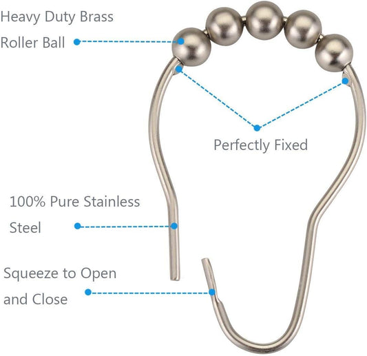 Shower Curtain Hooks Black Rust Proof Double Hooks 12Pcs