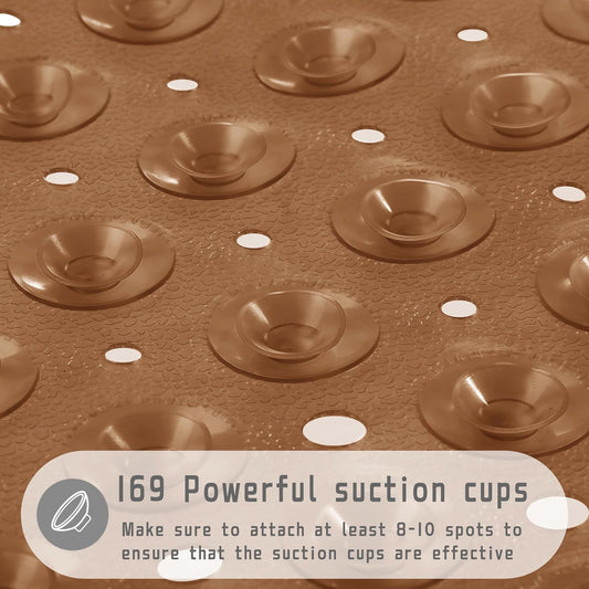 Shower Stall Mat Non Slip, 21X21 Inch, Soft Square Bath Mat for Shower with Suction Cups and Drain Holes, Stall Floor Mats for Bathroom, Machine Washable, Bathroom Accessories,Clear Brown