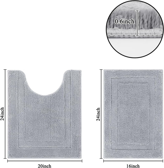 Small Bathroom Rugs Set Of 2 Non Slip Plush Mats Light Grey