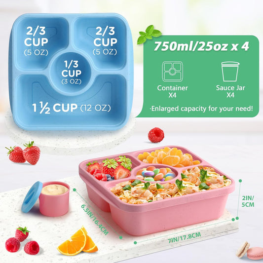 Pastel Bento Lunch Boxes 4 Pack With Lids And Sauce Cups