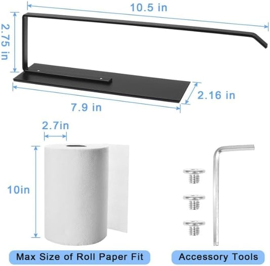 Paper Towel Holder under Cabinet - Sturdy 304 Stainless Steel Kitchen Paper Towel Holder Wall Mount, Drilling or Self Adhesive for Kitchen, Bathroom, Living Room, Black, 12.7" X 3.9"