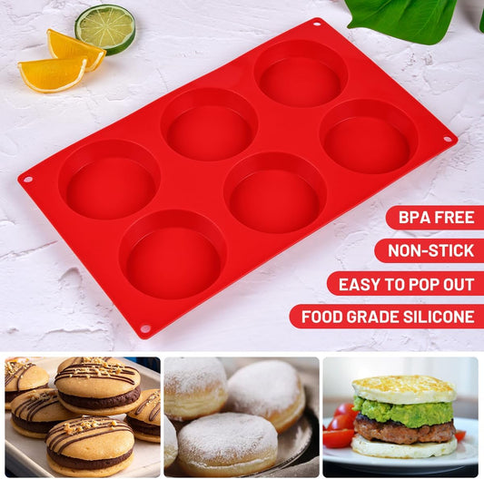 Muffin Top Pan, Silicone Molds for Breakfast Sandwiches, English Muffins, Whoopie Pies, Corn Bread, Egg Bites, Tarts - 2 Pack Red