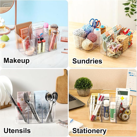 Multiuse Caddy Organizer with Handle - Stackable Plastic Tote Bin - Art Craft Supplies, Office, Desk, Stationery Pen Holder, Kitchen, Utensil, Makeup, Bathroom, Shower, Cleaning, Dorm Organizer -Clear