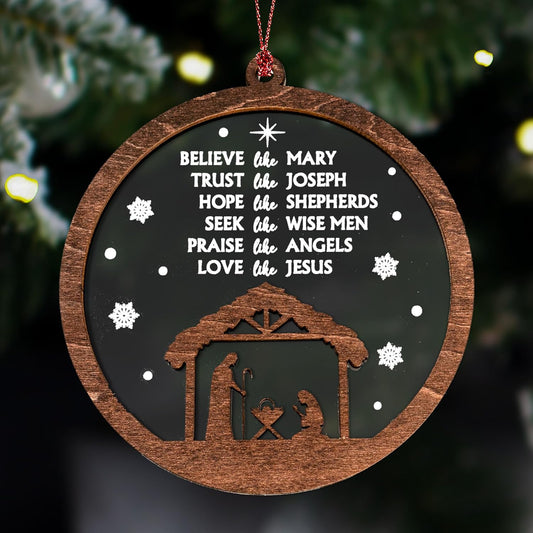 Nativity Christmas Ornaments 2025, Nativity Scene Ornament Gifts for Women Men, Oh Holy Night, Christian Ornaments, Baby Jesus Birth, Snow Holy Night Decoration, Inspired Decor for the Holidays