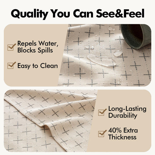 Natural Linen Cottton Table Cloth Rectangle Tablecloth Waterproof Spillproof Cross-Star Textured Table Cltoth Decorative Farmhouse Style for Dining Party Weddings 52X70 Inch