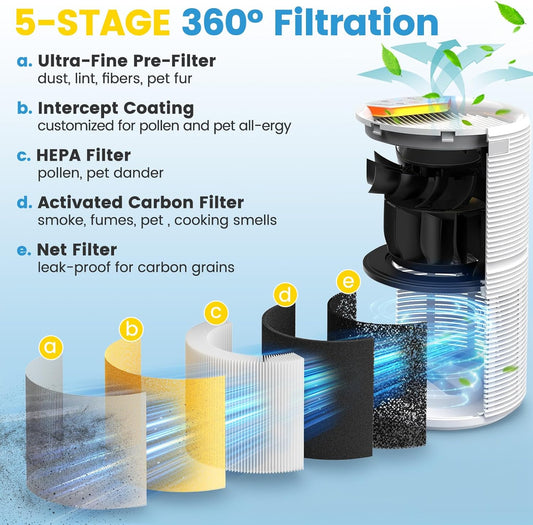 Replacement Filter for RENPHO RP-AP088W, RP-AP088, RP-AP088B Air Purifiers - 5-Stage High-Efficiency Filtration, Compatible with Part #RP-AP088-F1, 2 Pack
