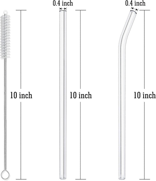 Reusable Glass Straws Set, 5-Piece Drinking Straws with Cleaning Brush, 10" X 10 Mm, Dishwasher Safe